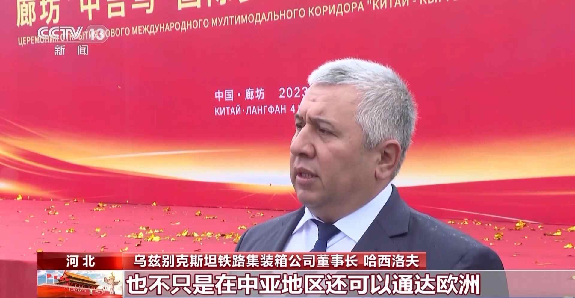 乌兹别克斯坦铁路集装箱公司董事长 哈西洛夫:不只是和中国开通了这一条线,实际上我们是构建了和周边国家的一张网,也不只是在中亚地区,还可以通达欧洲。铁路给我们带来便利,中欧班列就像给我们打开了一条连接世界的新通道。