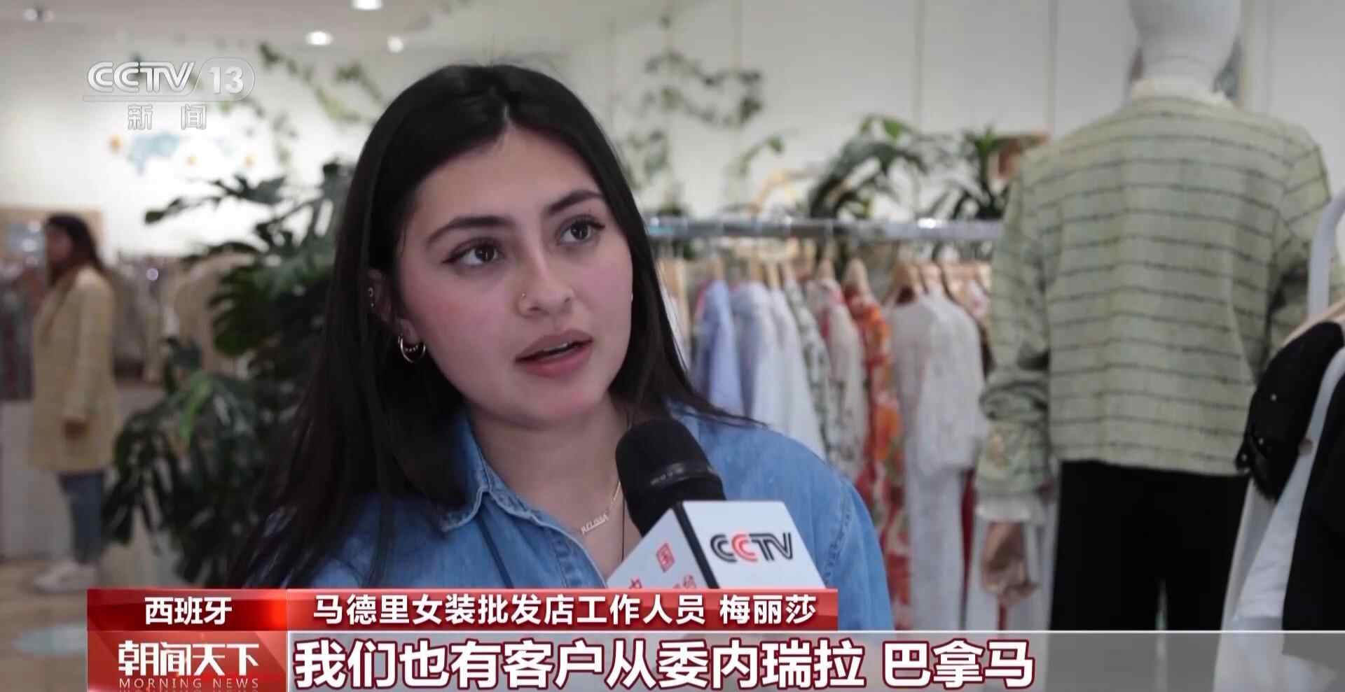 马德里女装批发店工作人员 梅丽莎:我们有来自拉丁美洲的客户,或者从欧洲的其他地方前来采购,比如从法国、意大利和德国过来,我们也有客户从委内瑞拉、巴拿马、哥伦比亚和阿根廷等拉美国家过来。