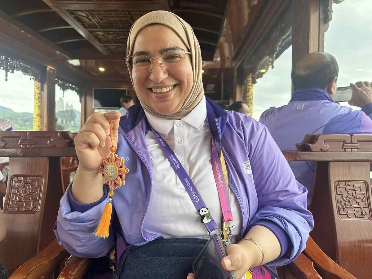“在亚运会赛场上看到了中国年轻人的能量,这是一种拼搏精神;而在这座城市里,看到的是生活,这里的人都很友善,让我没有陌生感。”Wafa Abdulrahim拿着“琮琮”挂件用中文说了一句“谢谢”。