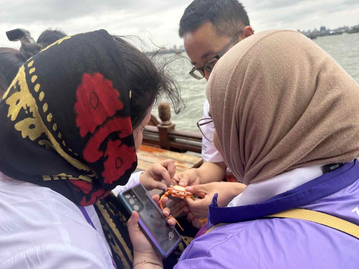 Wafa Abdulrahim跑到船尾与朋友分享礼物记者 包勇 摄