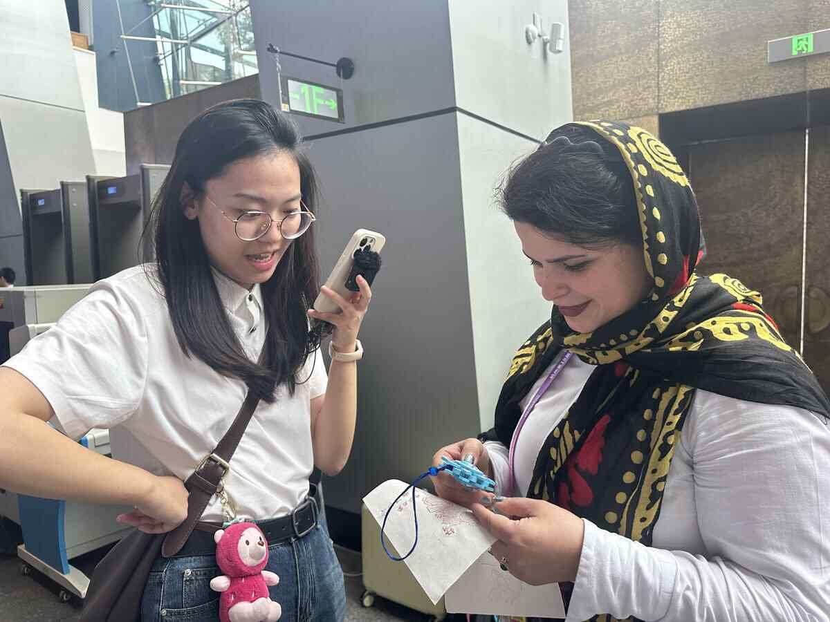 当Wafa Abdulrahim和Haniye Khandan得知,这些挂件是由一群平均年龄达到75岁的杭州“老来乐编织队”制作时,她们连连称赞。