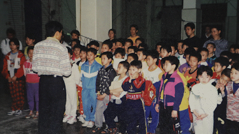 郑亮还保存了很多当年的照片,有一张照片拍的是冬训开始前的训话,小林跃就处在画面的中央。郑亮说,林跃从小就站C位。