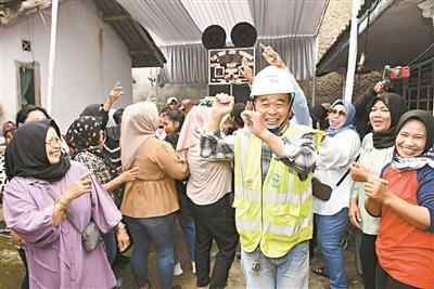 雅万高铁开通后,建设者们和当地民众一起庆祝。