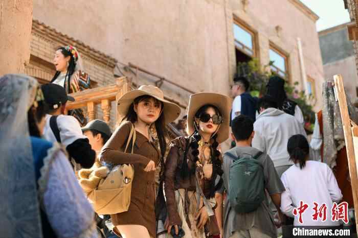 图为在喀什古城景区里一处网红打卡点的游人。中新网记者 孙亭文 摄