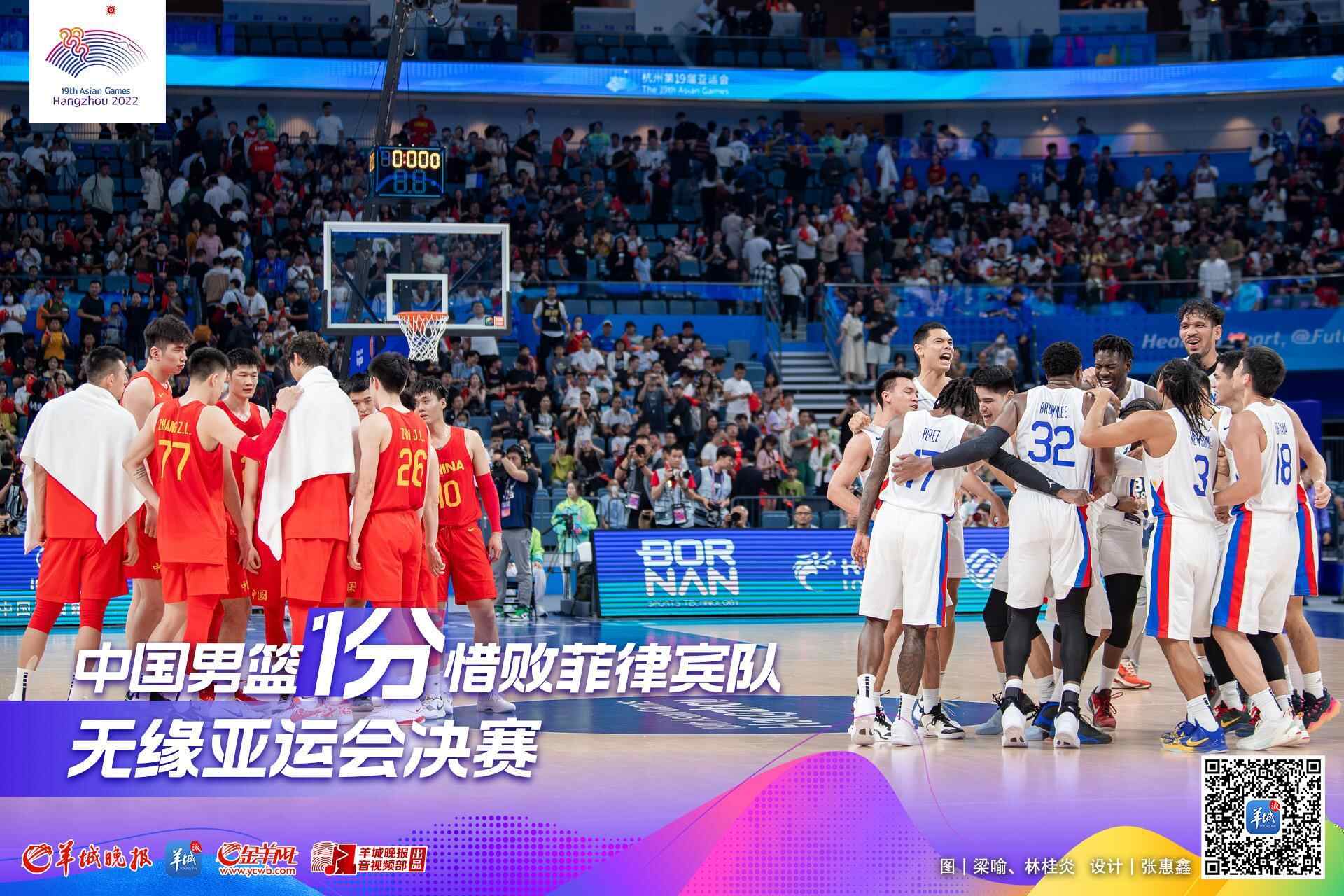 10月4日,杭州亚运会男篮半决赛在杭州奥体中心体育馆进行,中国男篮在最后一分钟被反超,以76比77不敌菲律宾男篮,无缘决赛。