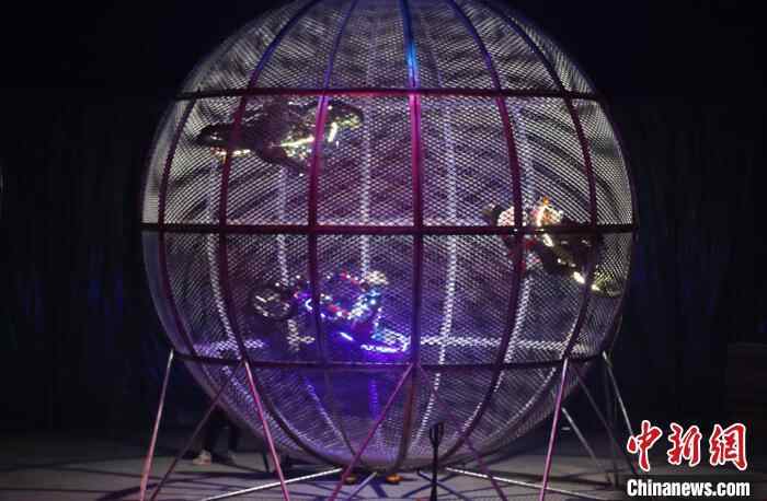 马戏团演员在银川文化园内表演环球飞车。中新网记者 于晶 摄
