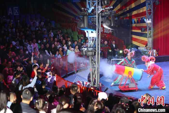 民众在宁夏银川文化园内观看马戏表演。中新网记者 于晶 摄