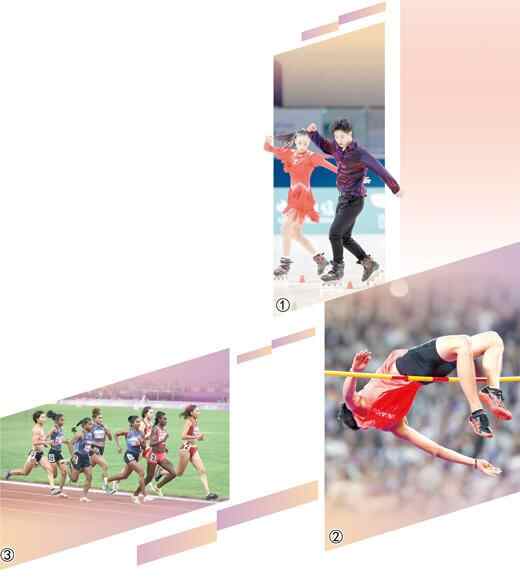 图①:10月4日,混合自由式轮滑男女双人花式绕桩决赛,中国体育代表团选手张颢(右)/朱思怡在比赛中。本报记者 蒋雨师摄