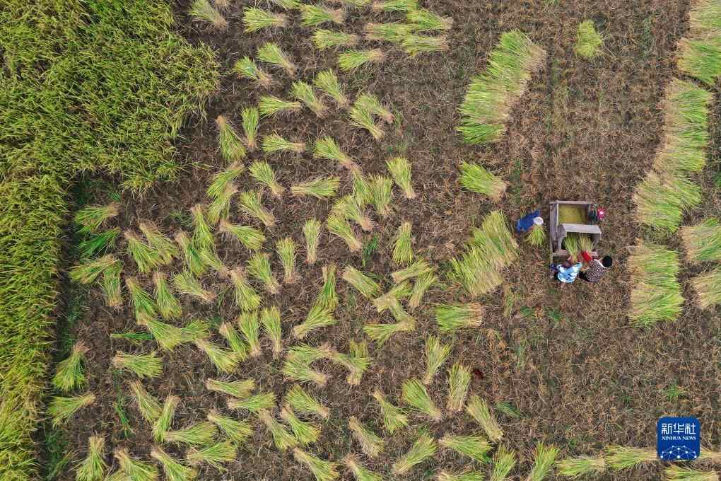 金秋十月,各地农民忙着抢收、抢晒,田间地头一派忙碌的丰收景象。