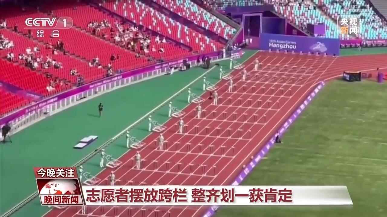 这几天,女子100米栏开赛前,志愿者摆放跨栏的动作火出了圈。视频里,“小青荷”们动作同样也是整齐划一,干净利落。