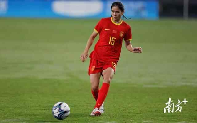 中国女足运动员,来自广东湛江的陈巧珠在比赛中带球推进。