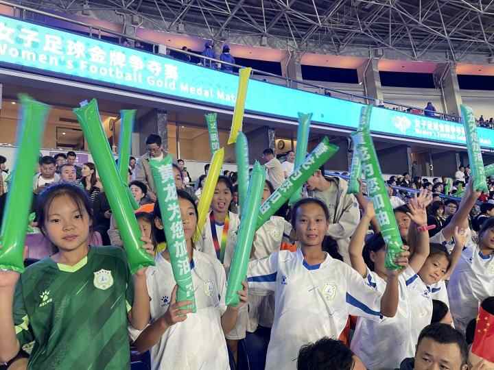 闲林中心小学副校长俞云峰说,亚运会期间,学校和家长只要有中国女足的比赛,都通过各种渠道“抢票”观赛,“虽然都很想去现场看比赛,但学校里许多家长,还是主动把票让出来给足球队的同学们,让他们感受大赛场的气氛。”