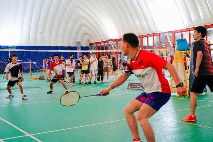 气膜馆羽毛球场地爆满。图片由受访者提供