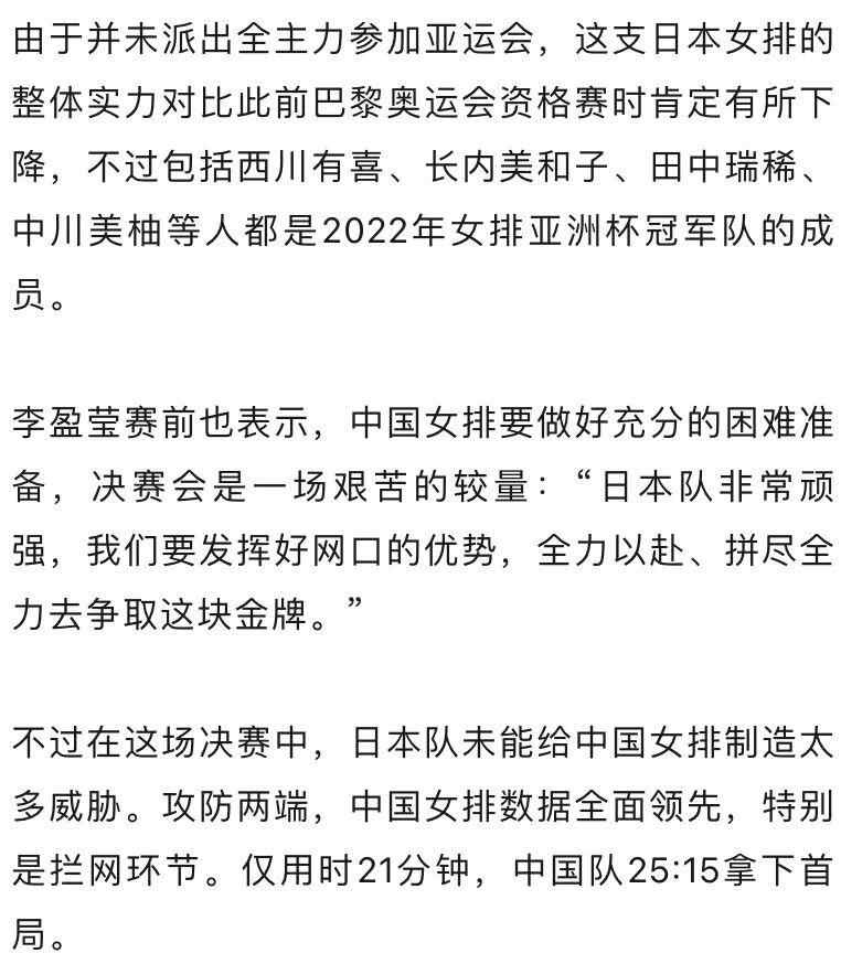 由于此前在巴黎奥运会资格赛中表现欠佳,未能获得直通资格,因此亚运会比赛对中国女排而言至关重要,球队需要借助这项洲际赛事迅速调整,重回正轨。