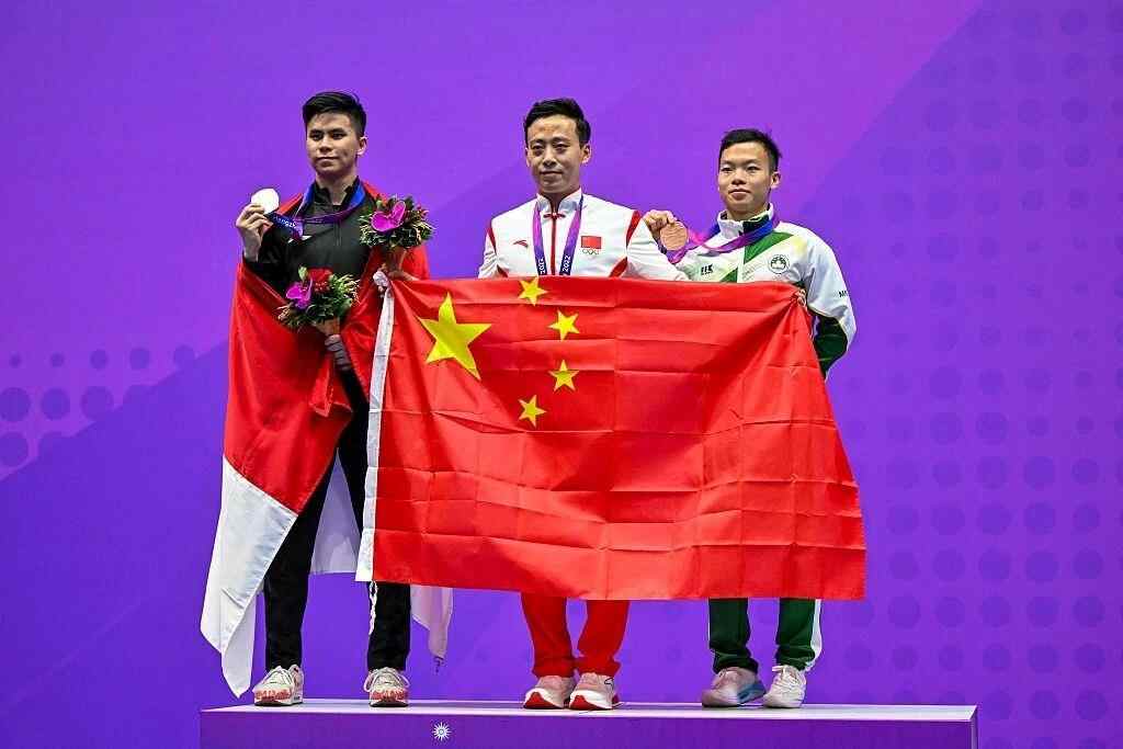 武术男子长拳决赛,中国队选手孙培原夺冠,中国澳门选手宋子君摘得铜牌。