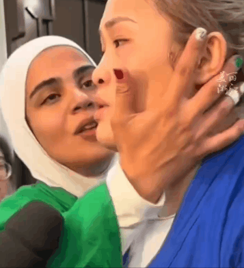 看到刘毅哭了,正在一旁接受采访的巴盖里走了过来,亲吻刘毅的脸颊安慰她,两人相拥而笑。