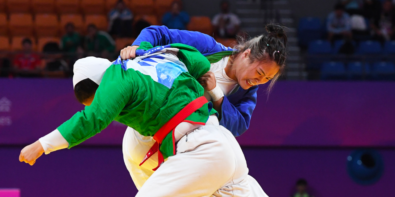 克柔术比赛中,面对来自伊朗的克柔术世界锦标赛冠军扎赫拉·巴盖里,中国选手刘毅稳扎稳打,最终夺冠。