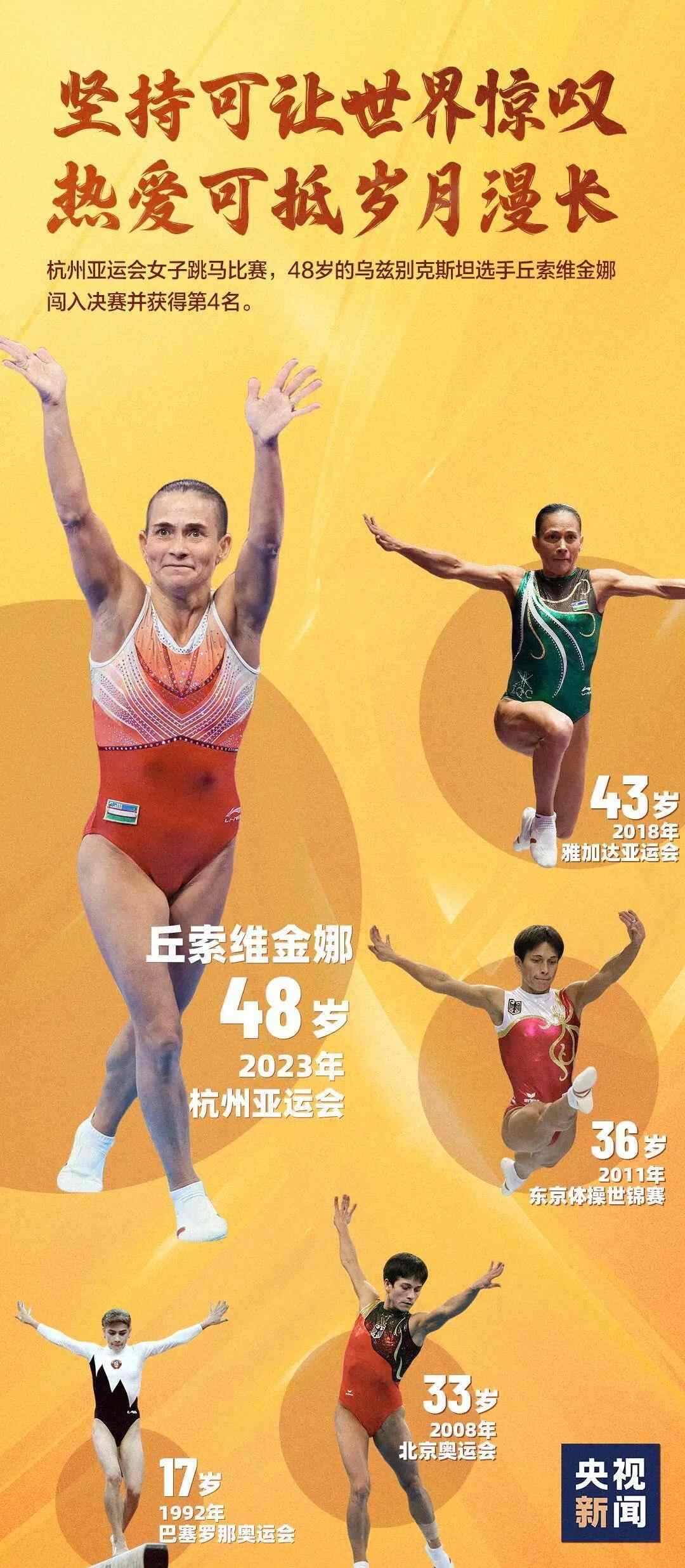 儿子痊愈后,丘索维金娜依然奋战在体操场上,她选择为自己而战。虽然这次杭州之旅最终未能获得奖牌,但她早已是传奇。