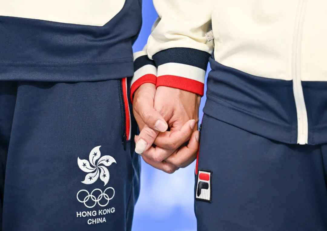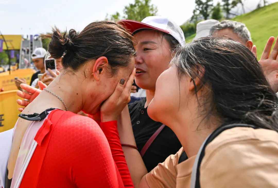 中国香港选手杨倩玉在颁奖仪式上落泪