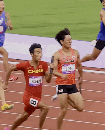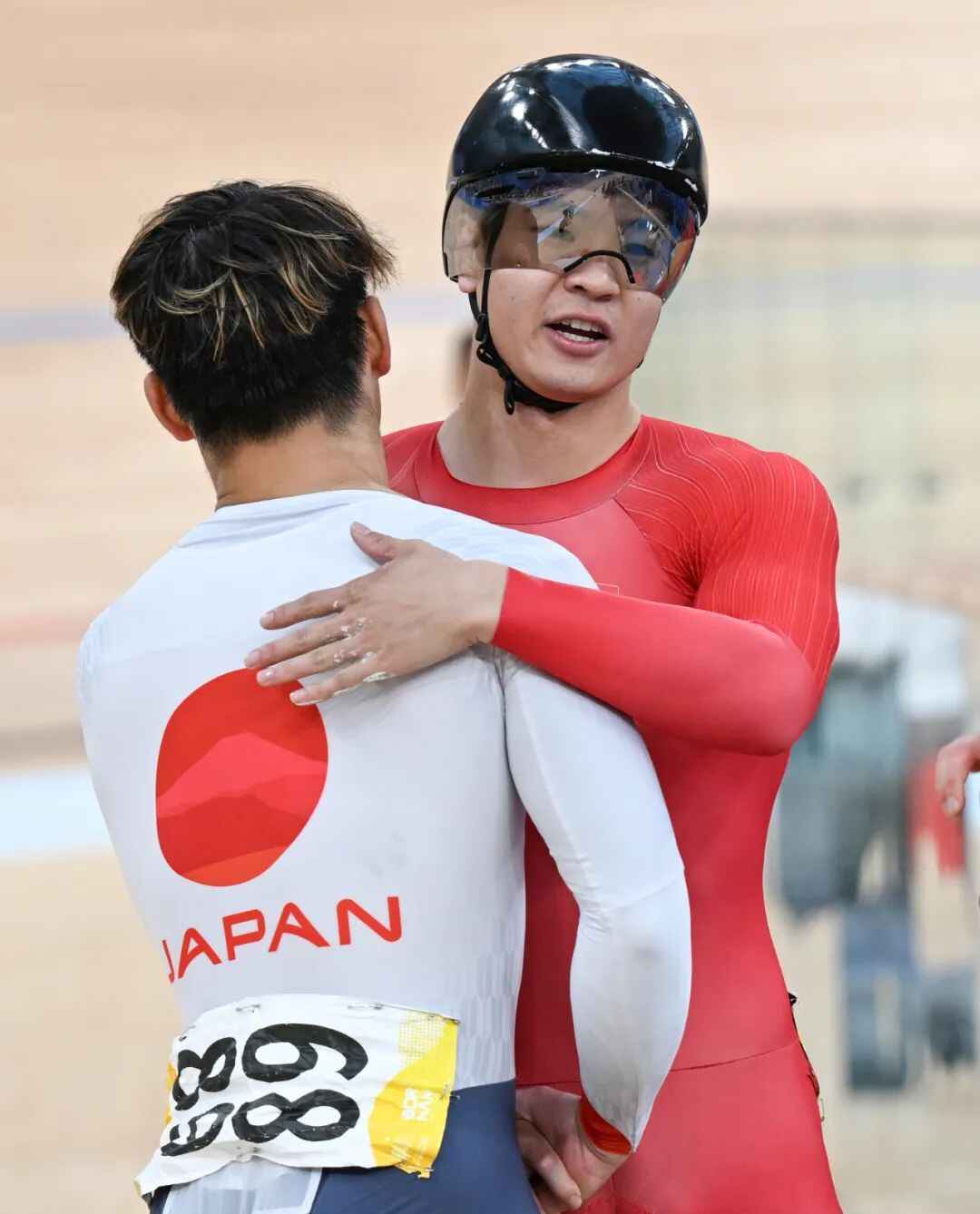 日本选手窪木一茂(左)和阿联酋选手艾哈迈德·曼苏里赛后交流