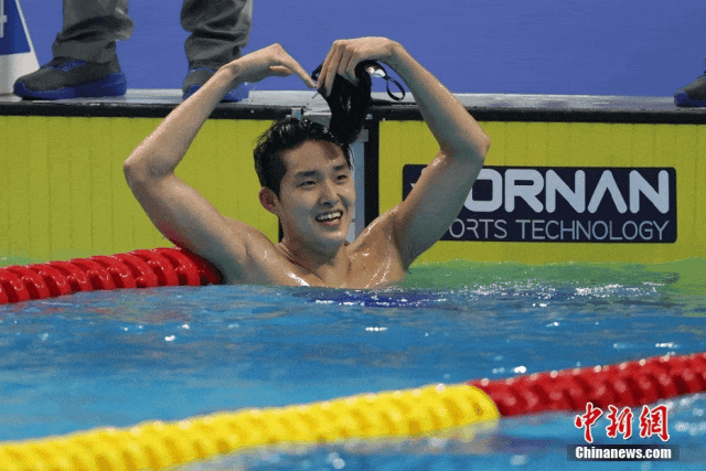 越南游泳小将武氏美仙在参赛选手和观众们的“陪伴”下,“独自”游完最后100米;