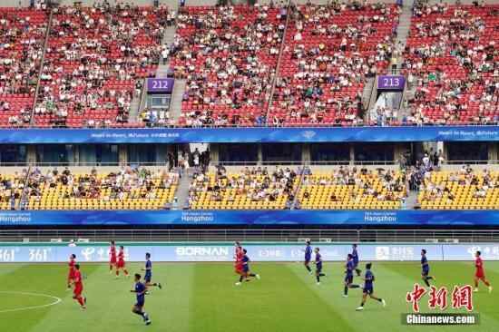 资料图:9月24日,杭州第19届亚洲运动会足球男子F组第三轮比赛在金华体育中心开赛,中国台北队对战吉尔吉斯斯坦队。中新社记者 董易鑫 摄