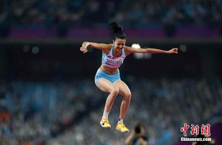 10月3日,杭州第19届亚运会田径项目女子跳高决赛在杭州奥体中心体育场举行,乌兹别克斯坦选手萨菲娜·萨杜拉耶夫娃获得金牌。