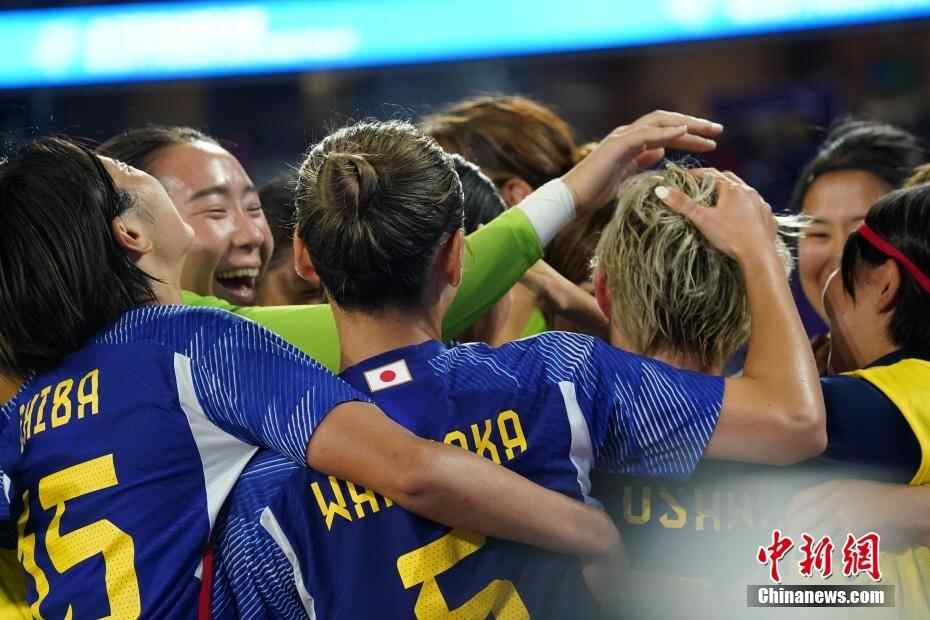 10月6日,杭州第19届亚运会女足决赛在杭州黄龙体育中心体育场举行。日本队(蓝)4比1战胜朝鲜队(红)获得冠军。图为日本队庆祝进球。