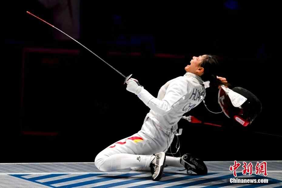 9月25日晚,杭州第19届亚运会女子个人花剑决赛在杭州电子科技大学体育馆举行,中国选手黄芊芊以15比8战胜日本选手上野优佳,夺得冠军。图为中国选手黄芊芊夺冠后呐喊庆祝。