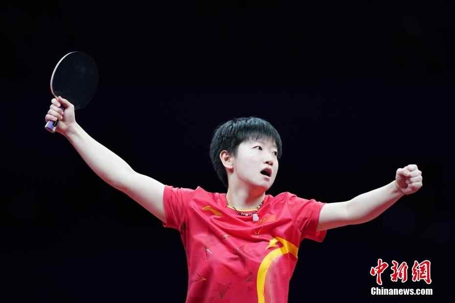 10月1日,杭州第19届亚运会乒乓球女子单打决赛在拱墅运河体育公园体育馆举行。中国选手孙颖莎以4:1战胜日本选手早田希娜,问鼎女单冠军。图为孙颖莎赛后庆祝胜利。