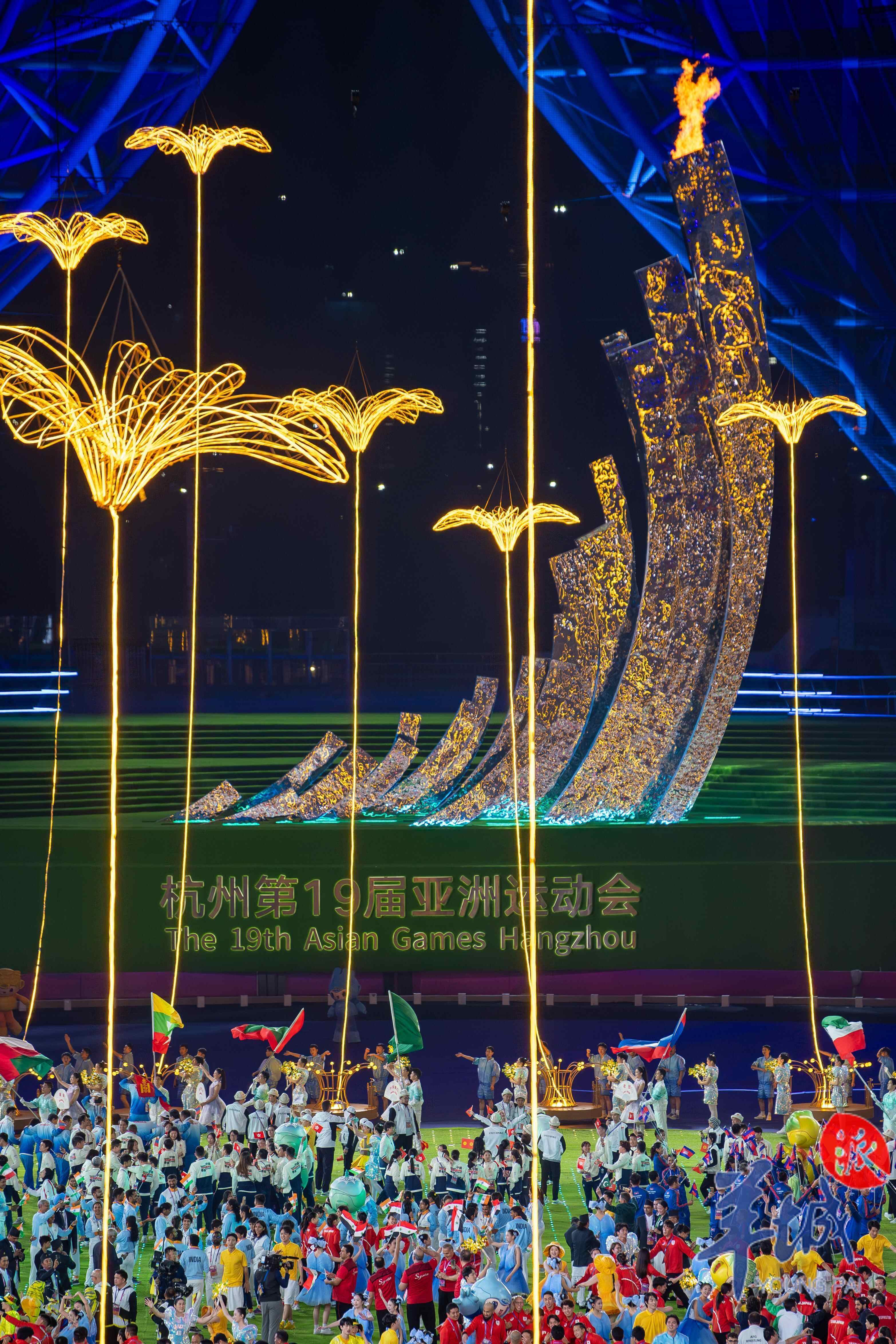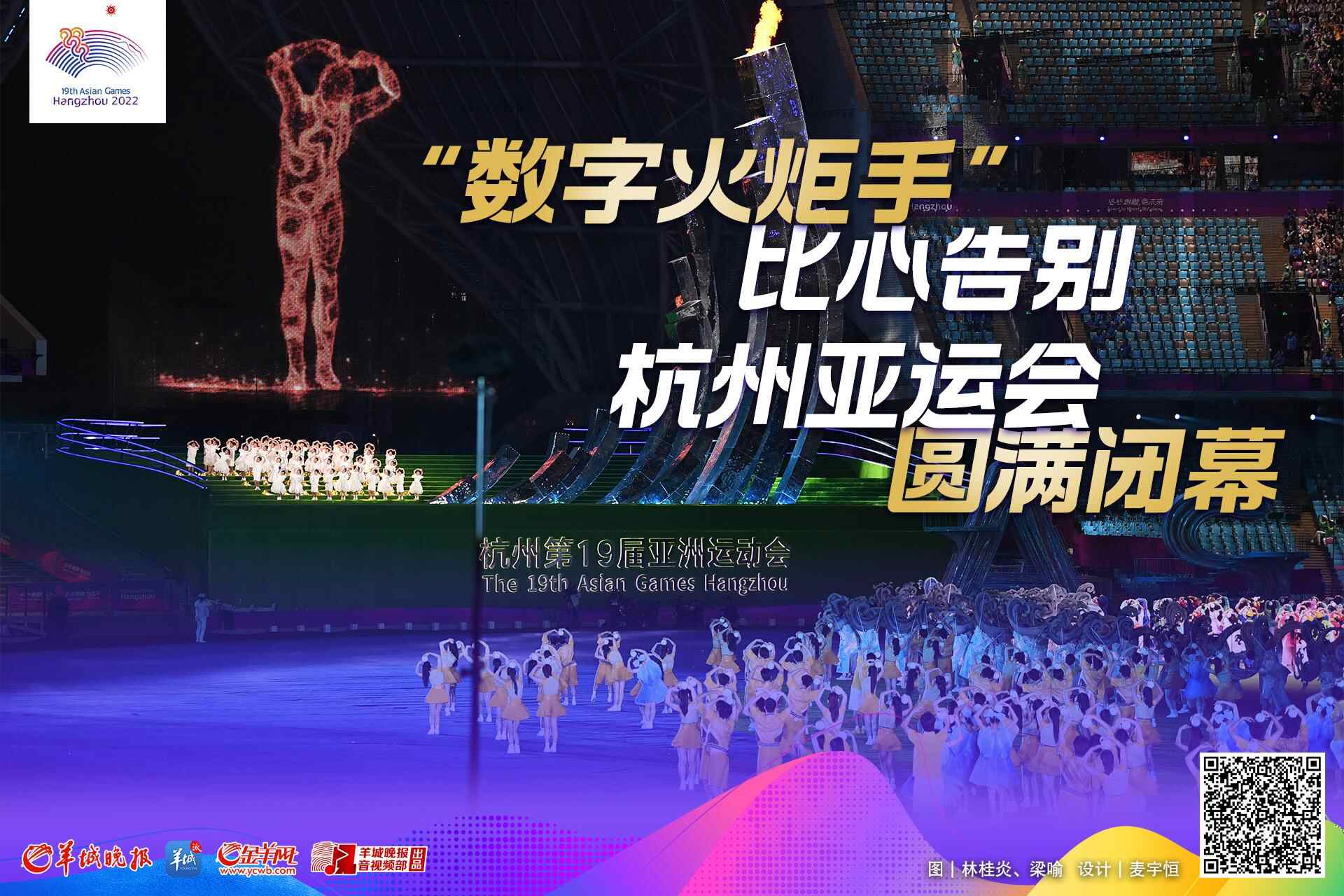 10月8日,杭州第19届亚运会闭幕式在杭州奥体中心体育场举行。闭幕式以“最忆是杭州”为主题,以一场惜别杭州与欢聚亚洲的嘉年华欢歌,传达“攀花赠友”的隽永情谊与“荷桂共生”的美好愿景。“数字火炬手”再次返场,他幻化漫天星光,洒向杭州,飞向亚洲。随着主火炬缓缓熄灭,杭州亚运会圆满落下帷幕。