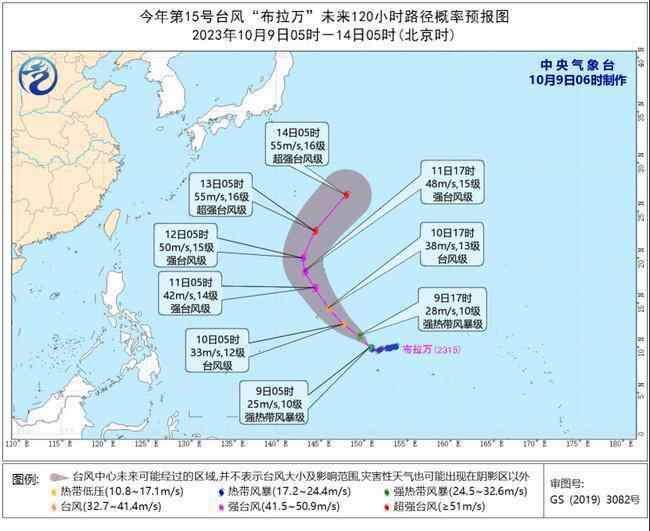 今年第15号台风“布拉万”(Bolaven)于今天(10月9日)早晨由热带风暴级加强为强热带风暴级,今天早晨5点钟其中心位于关岛塞班东南方向约810公里的西北太平洋洋面上,就是北纬10.0度、东经150.9度,中心附近最大风力有10级(25米/秒),中心最低气压为985百帕,七级风圈半径150-200公里。