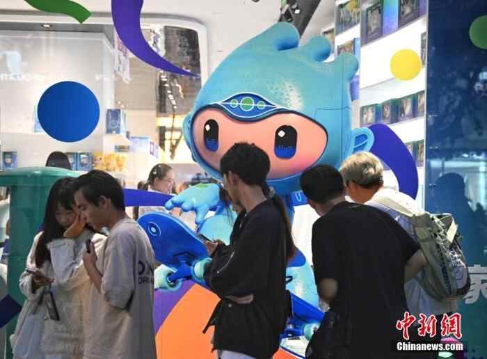 资料图:9月23日,杭州第19届亚运会开幕式在浙江杭州奥体中心体育场举行。图为游人在亚运特许商品店外排队购物。中新社记者 王刚 摄