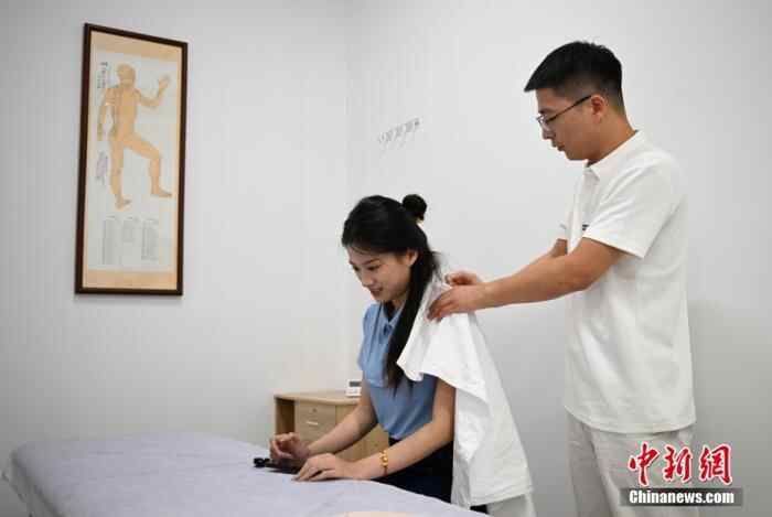 资料图:9月1日,体验者在主媒体中心体验中医推拿。中新社记者 王刚 摄