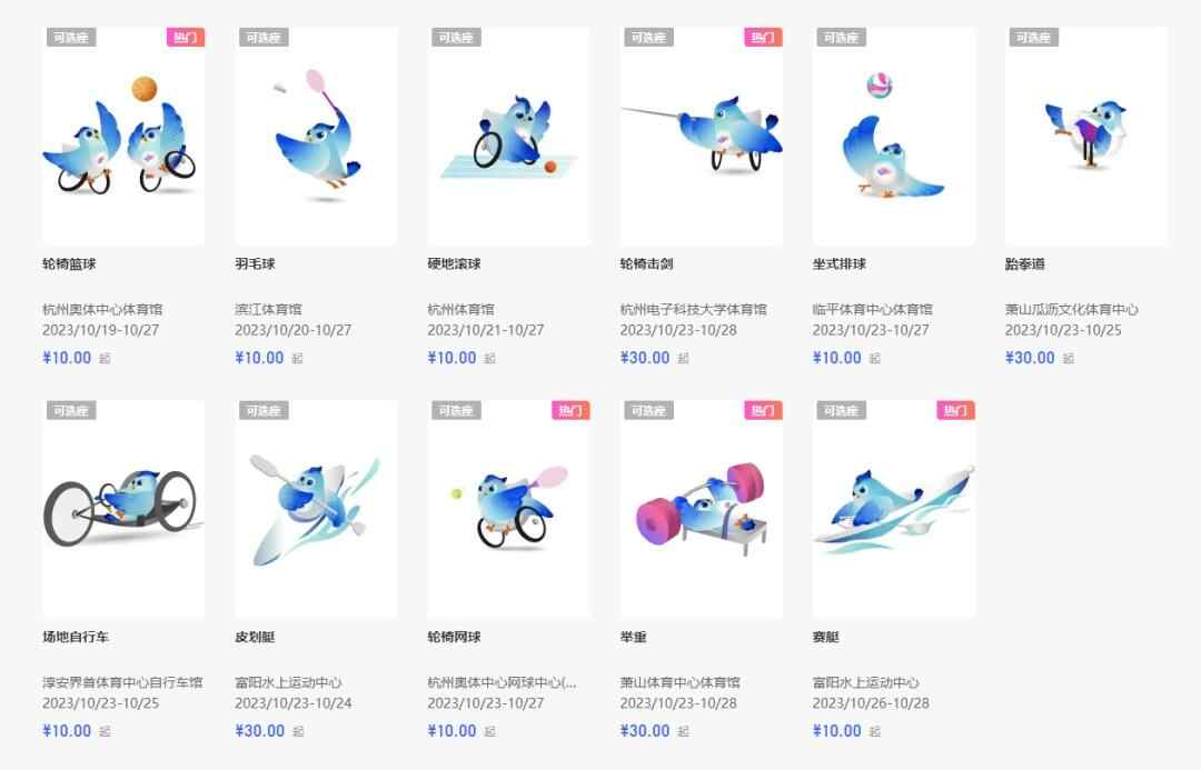 本次上架轮椅篮球、轮椅击剑、轮椅网球、举重、皮划艇、赛艇、跆拳道、硬地滚球、羽毛球、自行车、坐式排球共11个项目。公众可点击https://paraticket.hangzhou2022.cn/或微信左下方“原文链接”进入售票官网购票。竞赛场馆售票亭和官方门票服务网点等线下官方购票渠道将于后续启动并向社会公布。