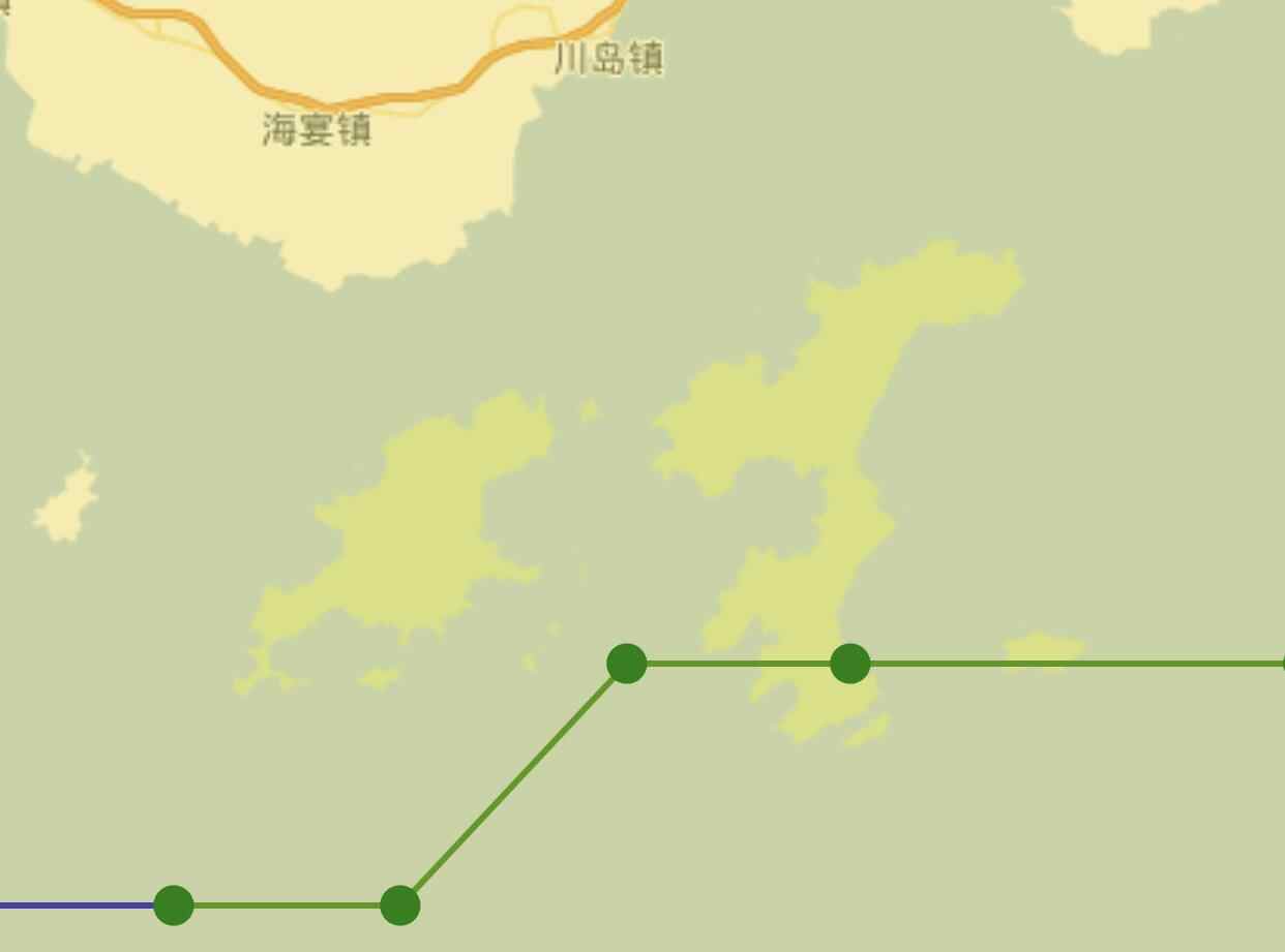 在中心经过上川岛前,“小犬”中心还曾经过上川岛以东的乌猪洲岛;离开上川岛时中心还经过上川岛西面海湾内的墨斗洲岛。