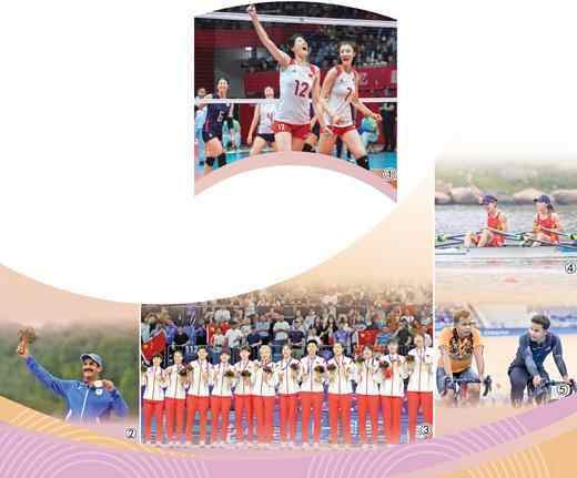图①:10月7日,杭州亚运会女子排球决赛,中国体育代表团选手李盈莹(前左)、王媛媛(前右)在比赛中庆祝得分。新华社记者 朱峥摄