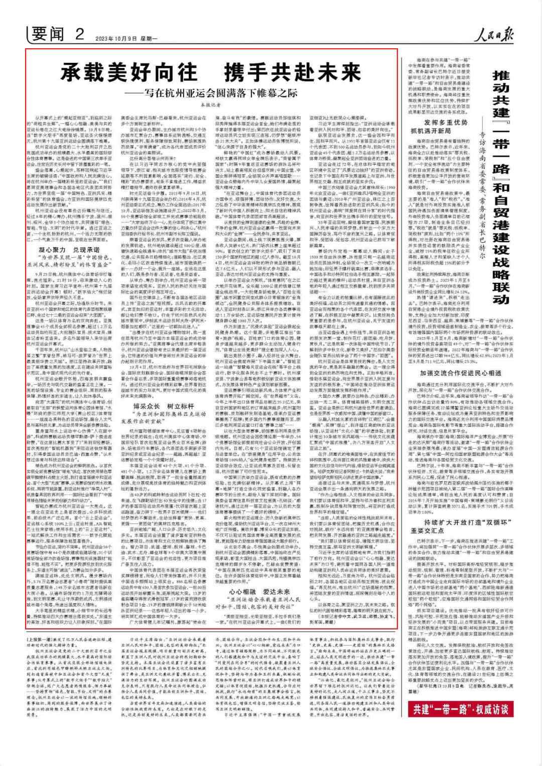 习近平主席的话语掷地有声,为我们指明了前行方向。杭州亚运会以“心心相融,爱达未来”为口号,寄托着中国同各国人民一道推动构建亚洲和人类命运共同体的美好愿景。