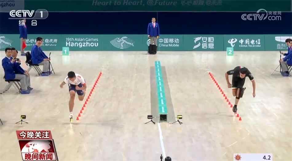 天下武功,唯快不破。别眨眼,这可能是杭州亚运会上最快的比赛了。在男子自由式轮滑速度过桩项目中,中国台北16岁小将黄品睿打破世界纪录,轮滑过20个桩仅用了3.885秒。