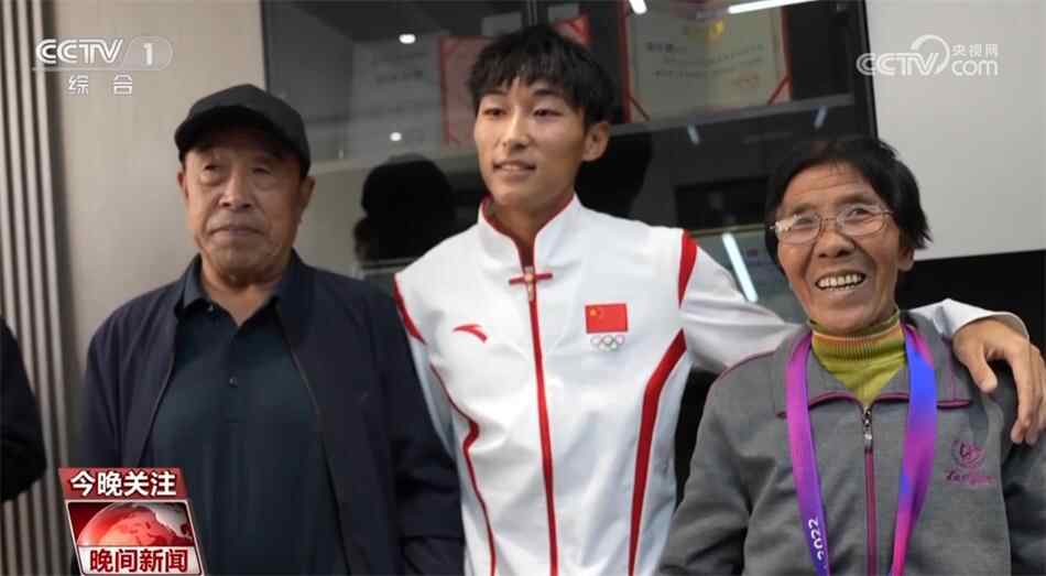 田径比赛男子4×100米接力决赛中,第四棒陈佳鹏接棒时,中国队稍微落后。凭借强大的后程加速能力,陈佳鹏在最后30米逆转对手率先撞线,中国队收获金牌。夺冠后陈佳鹏回到老家,先后把金牌挂在了妈妈和奶奶的脖子上,合影时奶奶笑得合不拢嘴。
