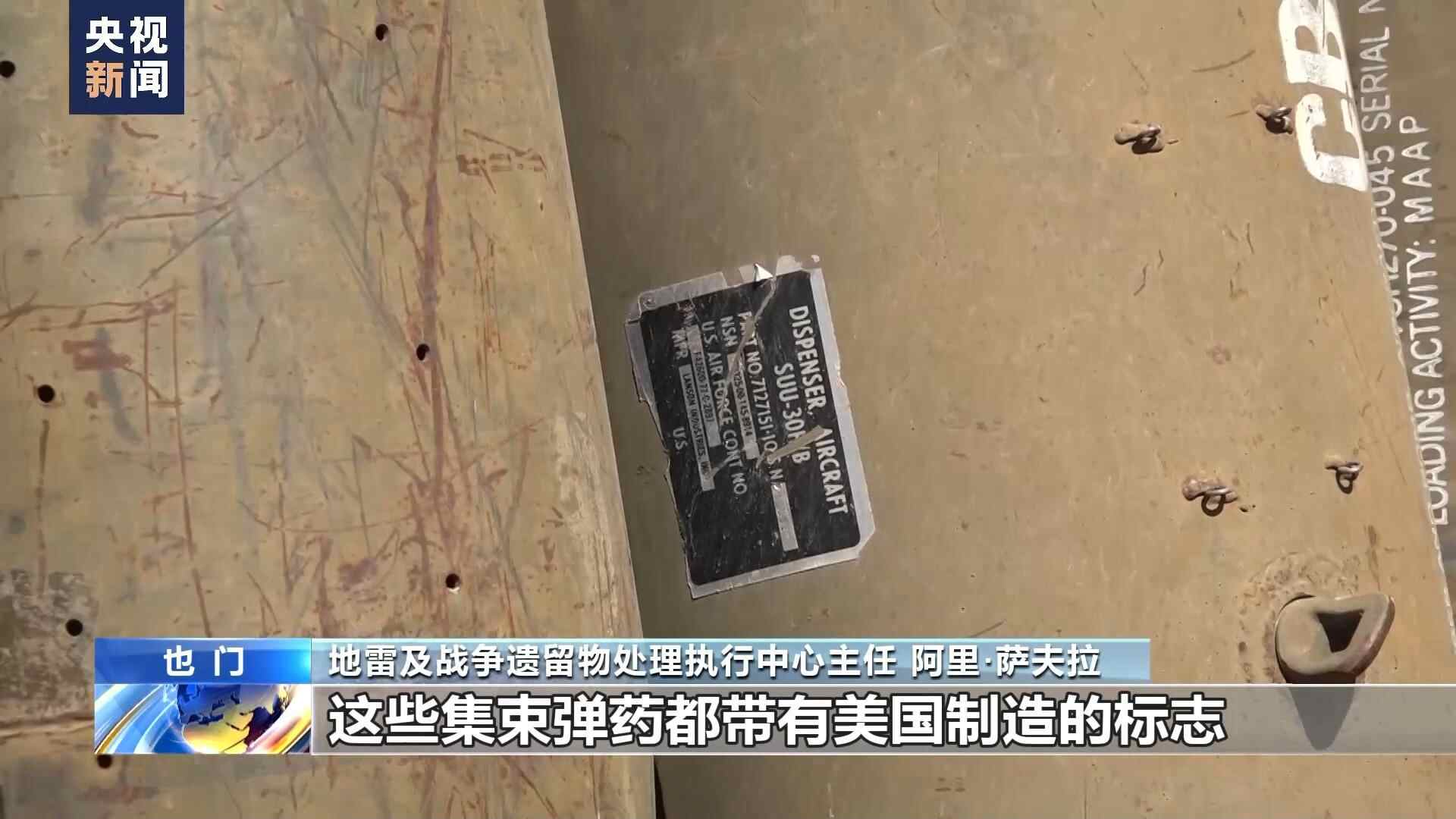 地雷及战争遗留物处理执行中心主任 阿里·萨夫拉:过去几年里,集束弹药在也门被广泛使用。这些集束弹药都带有美国制造的标志。