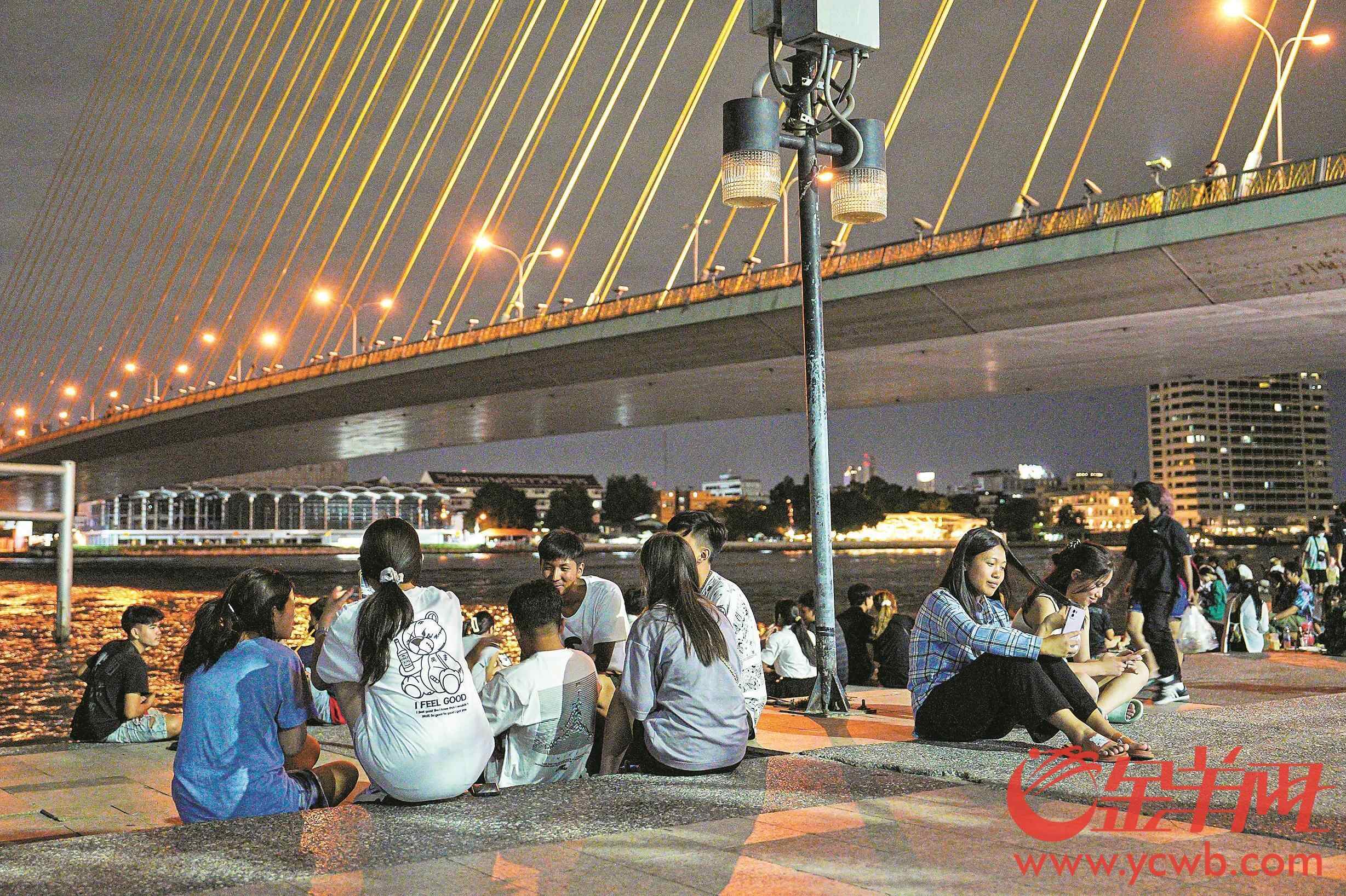 夜幕降临,位于泰国首都曼谷的拉玛八世大桥迎来繁忙时刻——桥上车水马龙,桥下的体育公园人流如织。