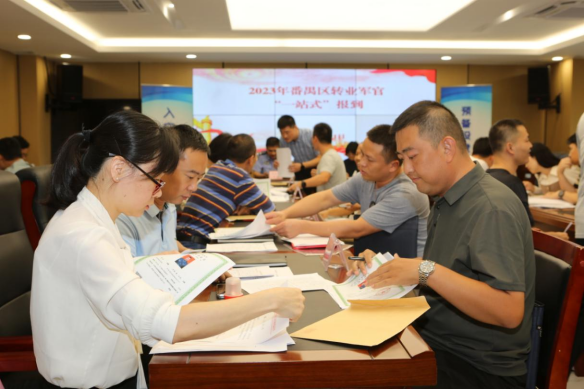 为了让信息多跑路,让转业军官少跑腿,10月11日下午,番禺区退役军人事务局严密组织2023年度转业军官接收报到,实现“一站式”办理、“一体化”服务,不断增强转业军官的获得感、幸福感和荣誉感。