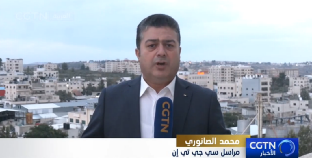 总台报道员穆罕默德·萨努里,在巴勒斯坦拉姆安拉,回传大量当地新闻报道。