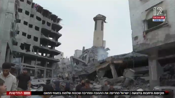 “我们现在正处于(加沙地带)此前遭以色列军机摧毁的一座大楼的废墟上。”
