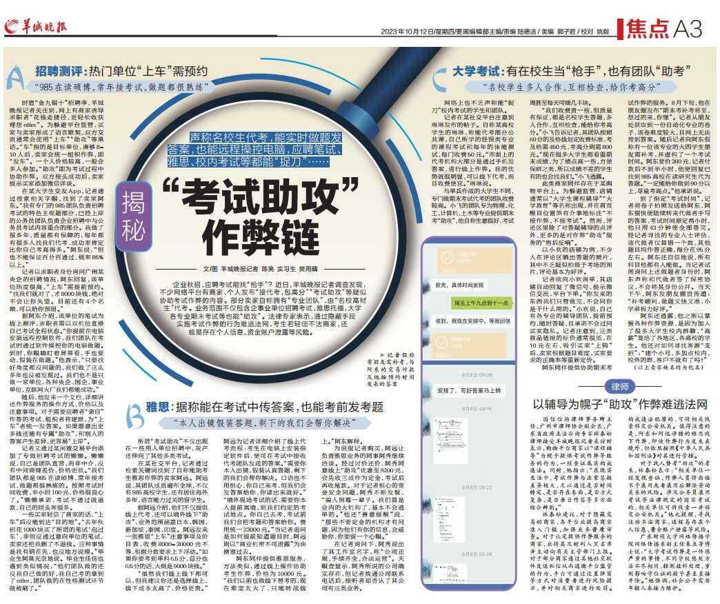 律师:以辅导为幌子“助攻”作弊难逃法网