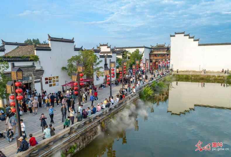2023年10月4日,游客在安徽省铜陵市义安区犁桥水镇景区游玩,欢度佳节。(肖本祥摄/光明图片)