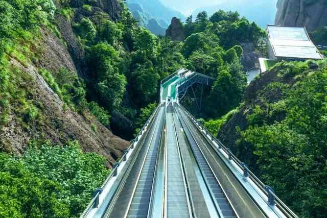 浙江台州的神仙居景区设置了百余米长的自动扶梯,被大家称为“南天梯”。
