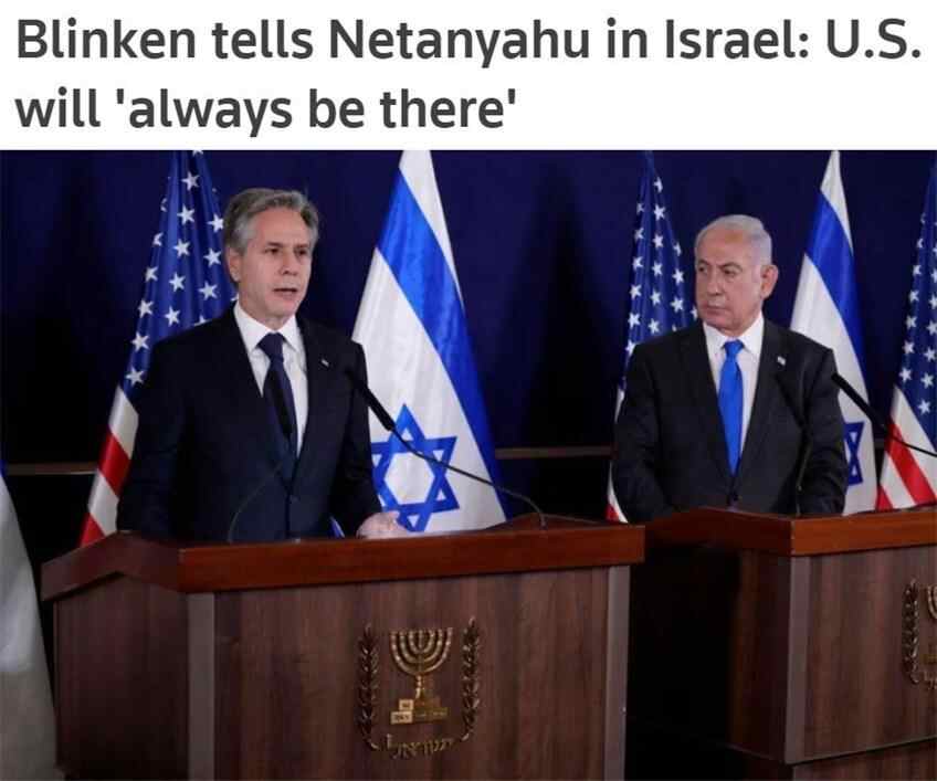 当地时间12日,美国国务卿布林肯抵达特拉维夫,与以色列总理内塔尼亚胡进行了会晤。会面中,布林肯表达了美国对以色列的支持。