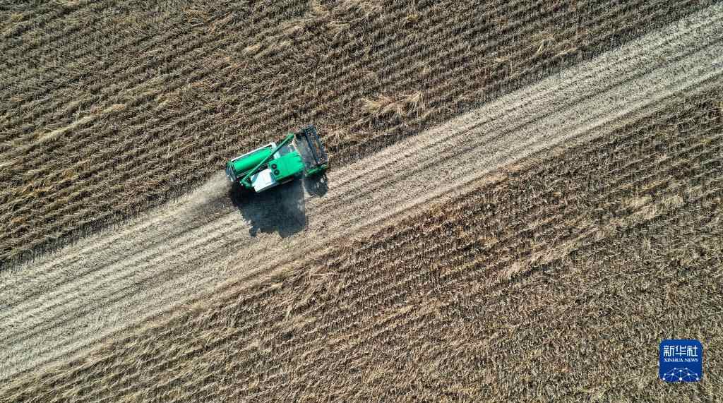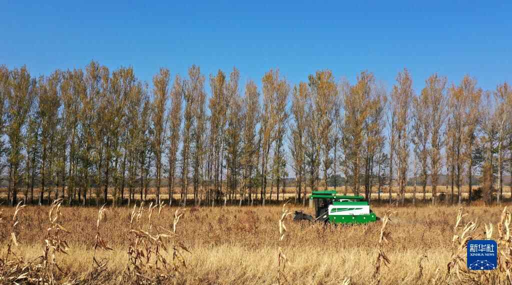 10月12日,收割机械在昌图县亮中桥镇永丰村的玉米田里作业。
